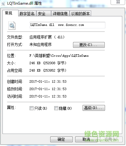 LQTInGame.dll文件是一类英雄联盟客户端程序文件,此文件一般出现未指定的windows运行错误,弹出如下图示框,用户可根据以下方法解决,欢迎到绿色资源网下载LQTInGame.dll文件使用!