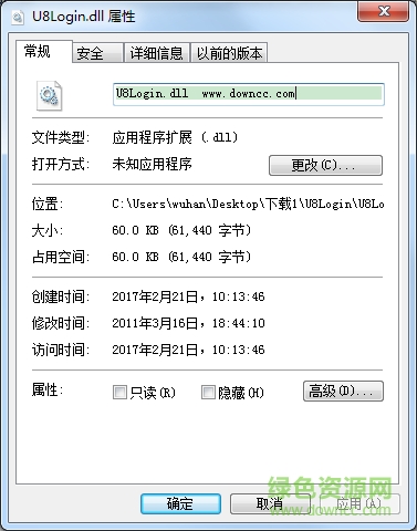 2、复制文件“u8login.dll”到系统目录下;