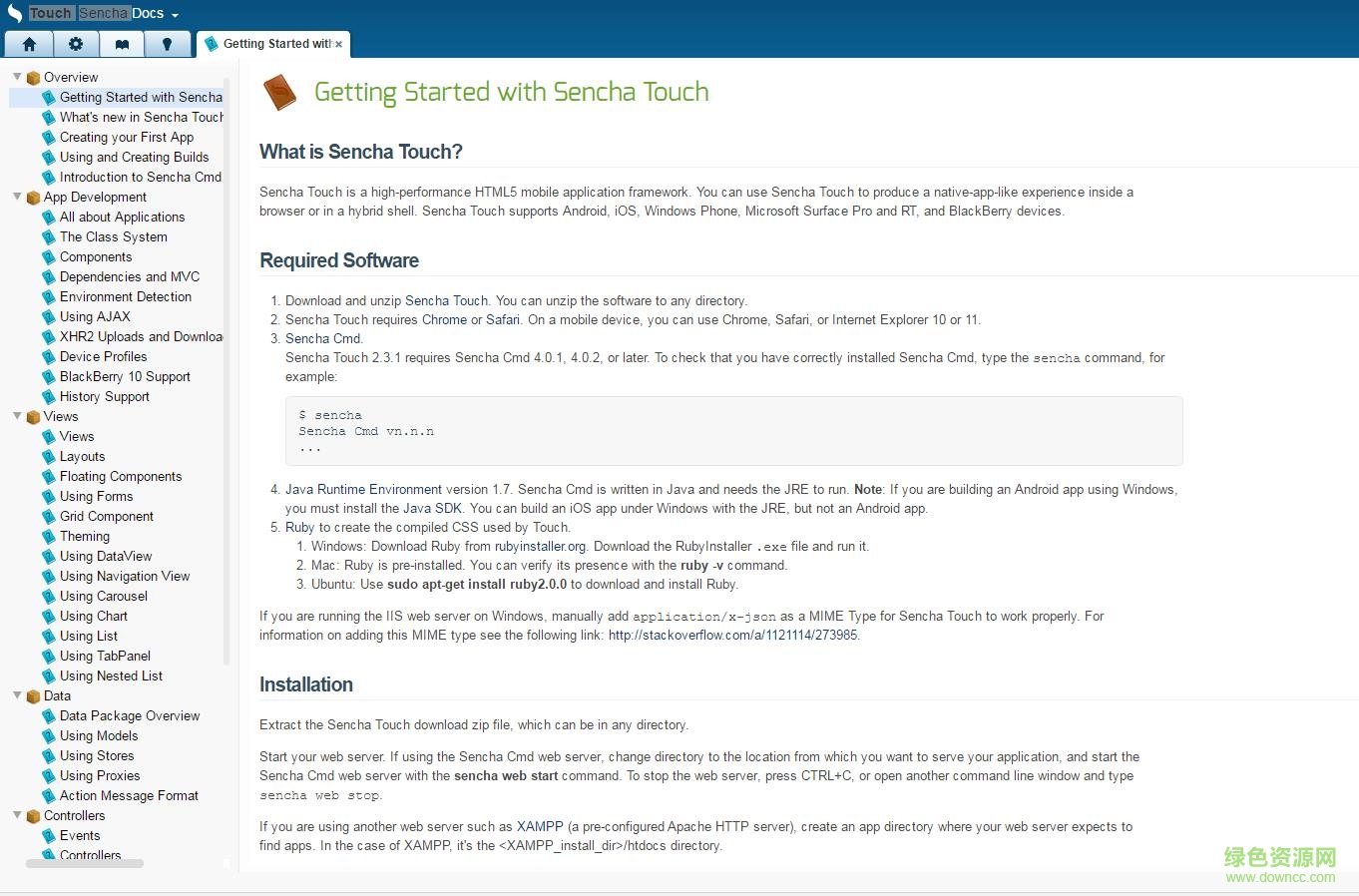 - 官方网站:http://docs.sencha.com/touch/2.3.1/#!/guide/getting_started