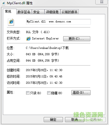 一、请在绿色资源网把mpclient.dll下载到本机。