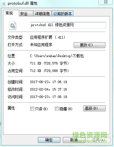 在绿色资源网下载并解压后,直接拷贝protobuf.dll文件到系统目录里: