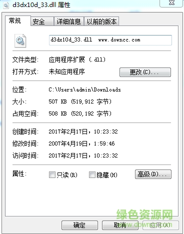 解决d3dx10d_33.dll丢失最好的办法就可重新下载安装,小编为大家提供了最新的d3dx10d_33.dll文件,可以帮你完美解决“没有找到d3dx10d_33.dll”或者“缺少d3dx10d_33.dll”等类似错误信息,需要的朋友快来绿色资源网下载吧!