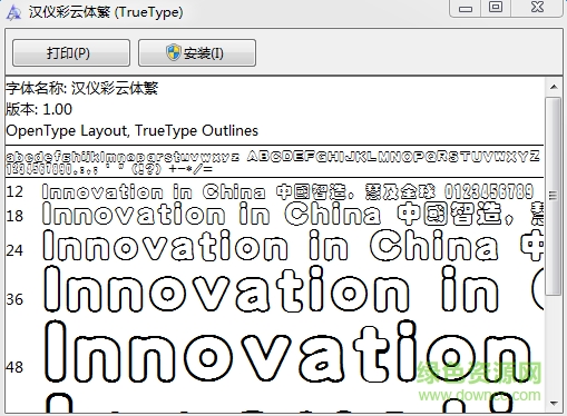 汉仪彩云体繁是一种很有个性的电脑字体,这款字体不像普通字体那样是实心的,而它是空心的,是不是很不一样,可以用来写作、绘画等,喜欢的朋友可以来绿色资源网下载。