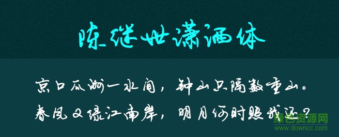陈继世字体 陈继世字体是一种很不错的电脑字体,不仅字形美观,而且实用性强,可以用于很多方面,艺术设计、广告设计等都是很合适的,当然如果大家喜欢这些字体的话不管用在什么方面都是可以的,欢迎大家来绿色资源网下载。 查看更多>> 陈继世泰山体 1.48M/中文/10.0/下载 陈继世晓雯体 1.20M/中文/10.0/下载 陈继世行楷 1.88M/中文/10.0/下载 陈继世怪怪体常规 2.41M/中文/10.0/下载 陈继世古韵简体ppt字体 2.81M/中文/10.0/下载 陈继世潇洒体 1.78M/中文/10.0/下载