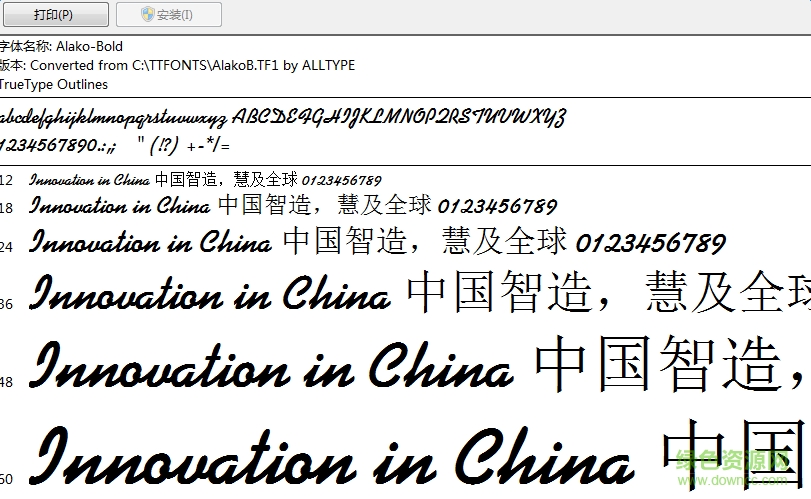 软件介绍 软件标签: 英文字体 字体 alako bold font字体是一款英文字体库中的个性字体,该字体可以广泛应用于广告设计、宣传海报、ppt、影视制作以及任何使用文字的领域,有需要的朋友可以免费下载收藏。字体安装方法方法一:控制面板/字体/文件/安装新字体;方法二:直接将字体复制到C:\WINDOWS\Fonts。方法三:针对win7系统,用户只需选中字体右键安装即可。注意事项本站所有字体资源仅供个人学习与参考,如需商业使用请到相关官网授权。 软件截图 上一张下一张(1 / 1) 安装详细截图 其他版本下载 标题 大小 更新日期 下载 下载地址 电脑版 alako bold font字体 点击报错 软件无法下载或下载后无法使用,请点击报错,谢谢! 关闭报错反馈 请描述您所遇到的错误,我们将尽快予以修正,谢谢! *必填项,请输入内容 本类最新 sounso beauty字体 spyced哥特英文字体 ttf版 zerodegrees字体 the next font ttf版 coolvetica font keep calm ttf 免费版 相关文章 Photoshop字体安装使用方法和技巧 如何解决“无法新增字体”问题 Win 7系统安装字体方法 网页字体大小设置方法 怎么改网页字体大小 在Linux系统中安装字体的几种方法 windows7字体显示问题:打开某些程序的时候显示的是乱码 用户评论 热门评论 最新评论 发表评论 查看所有评论(0) 昵称: 请不要评论无意义或脏话,我们所有评论会有人工审核. 字数: 0/500 (您的评论需要经过审核才能显示)