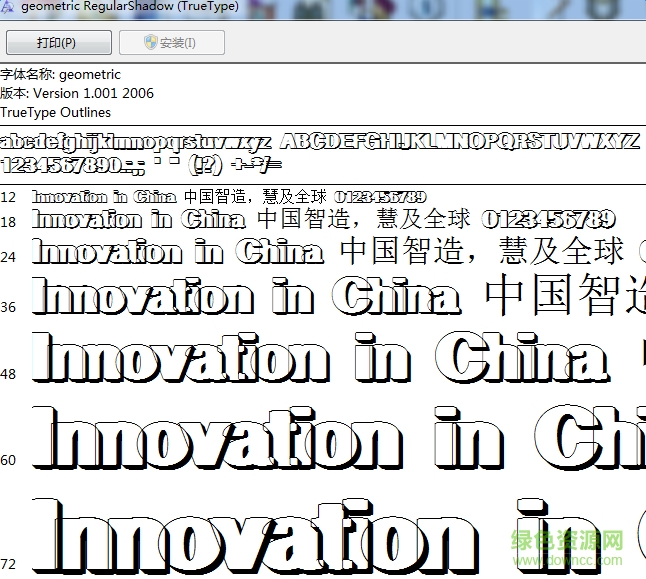 geometric字体是英文字体库中的一款极具个性的字体,该字体的形体非常灵秀,整体十分严谨。适用于美工设计,有需要的用户可以来绿色资源网下载使用!