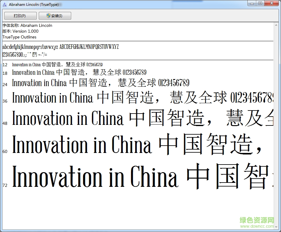 abrahamlincoln是一款简单实用的电脑字体软件,字体简洁端正大方,线条流畅极具美感,使用简单时刻彰显个人魅力。快来绿色资源网下载体验吧!