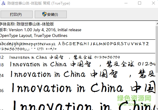 陈继世泰山体真的是一款很实用的电脑个性字体,小编已经帮大家试用过了,大家可以放心使用,欢迎大家来绿色资源网下载。