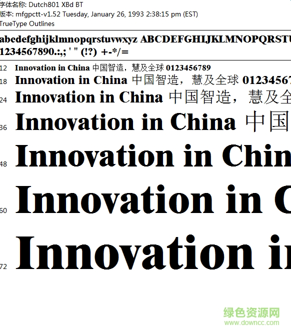 dutch801bt字体是一款英文系列字体,字体以粗黑整齐大方著称,笔画一丝不苟十分规范,非常好看,喜欢这款字体的朋友欢迎到绿色资源网下载使用!