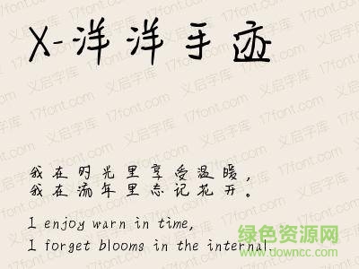 x洋洋手迹是一款适合开心时使用的字体,洋洋得意的表情从字里散发,仿佛世界都变得美好起来,字形散漫而紧凑,趋于完整。欢迎大家来绿色资源网下载使用!