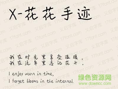 x花花手迹是一款x手迹的简体手写字体,包含青春的气息,在年少的时光就应该使用充满阳光与美好的字体书写。适合记笔记、文章等。欢迎大家来绿色资源网下载使用!