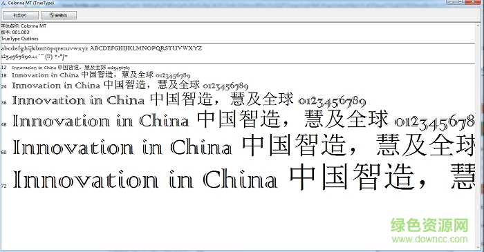 colonna mt字体是一款华丽大气的英文双线字体,每一个字母都是由双线构成,个性鲜明,十分吸睛,可以用在广告、杂志等方面,需要的朋友快来绿色资源网下载吧!