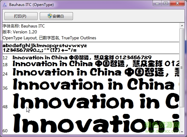 4.字体安装完成后,在系统中显示名称为:Bauhaus ITC