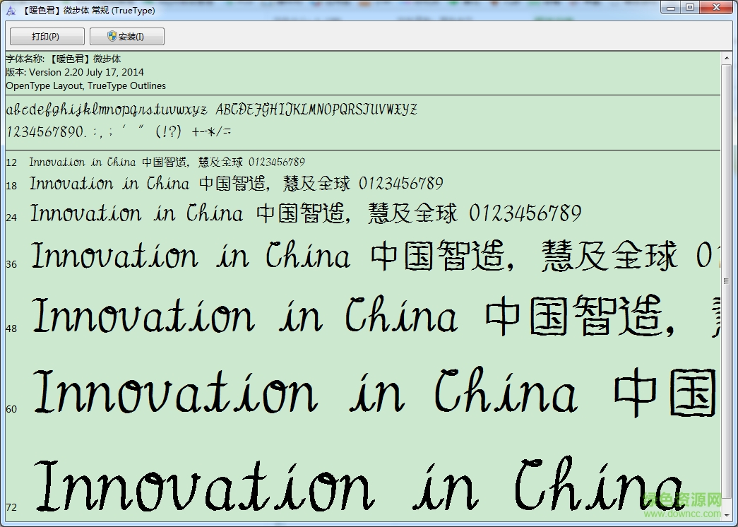 字体安装完成后,在系统中显示名称为:【暖色君】微步体