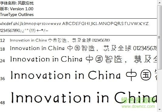 风歌忘忧字体是手机qq上推出的一款个性字体,虽然没有多余的修饰,但将部分的笔画变得弯曲圆润起来,如同流动的小溪、奔腾的浪花,让文字变得活泼起来,相信你一定会喜欢的,来绿色资源网看看吧!