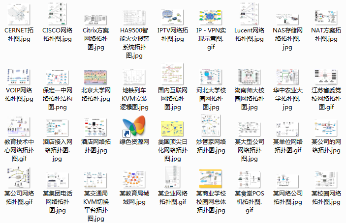 拓扑图打包为大家提供了企业、校园网络拓扑图各个类型素材,画拓扑图的用户可以使用它,以后再也不用发愁了,赶紧下载收藏吧。