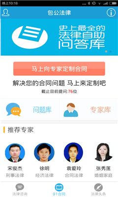 包公法律是“青天团队”精心打造的以原创的法律自助咨询以及91合同助手相结合的在线法律智能服务平台。包公法律以法律垂直领域的咨询和合同移动端为特色,随时、随地为你提供最便捷、高效的一站式法律需求解决方案。 包公法律是你的移动办公法律服务助手。