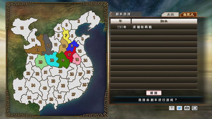 3.开始游戏,选择自定义剧本 → 汉朝复兴战