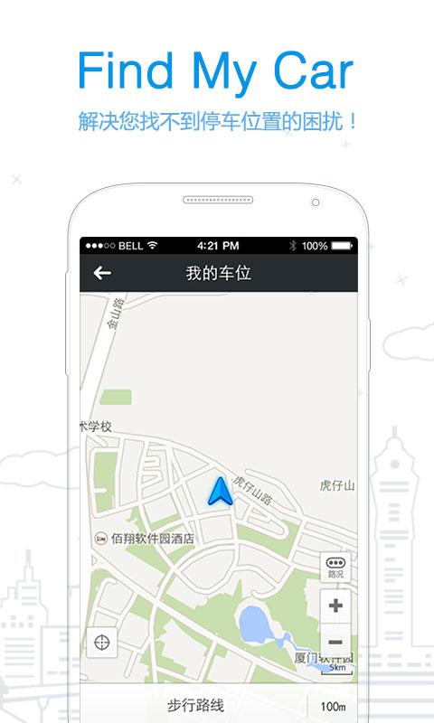 —当您停车时,软件会自动记录车辆的位置,让您能够在手机端及时查看车辆的位置,同时手机端的应用引导您从当前位置到停车位置。