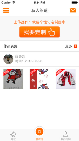 基于C2M的私人织造,用户可以把自己手工画作或喜欢的照片上传到app,由厂家根据图案进行设计,织出世界上唯一一条专属围巾,既有逼格,又有个性。 您有您的不同!