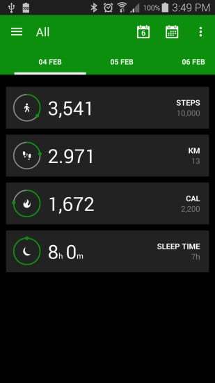 Nabu Fitness则是雷蛇Nabu X智能手环监测日常健身运动的标准应用了,用户可以在这里快捷的了解到三天内的步数、公里数、消耗的卡路里以及睡眠时间。不过技术测试中的APP还是有些问题,比如睡眠时间那里会被遮挡。