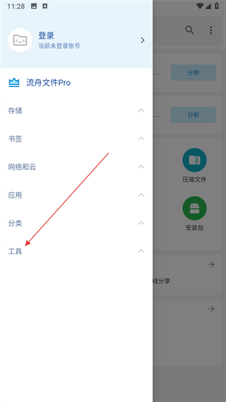 2、展开侧边栏找到工具选项并点击,展开工具功能列表。