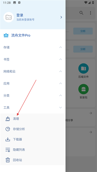 3、在工具功能列表里,点击清理选项,进入清理页面。