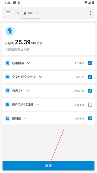 分析内部存储,清理空文件、空文件夹、日志文件、临时文件、缓存文件、冗余文件、重复文件、大文件,释放存储空间