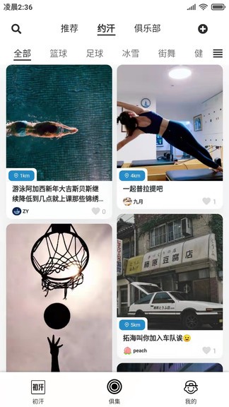 初汗 app让运动也能变得趣味十足的体育平台,这里汇集了多个运动项目,通过线上了解的方式来参与到能提高身体健康素质的活动当中。把每天的运动量记录在平台内,科学分析各类数值。通过这款应用,用户不仅能够进行运动的约定,还能获取专业的指导服务,真正实现运动社交的乐趣。
