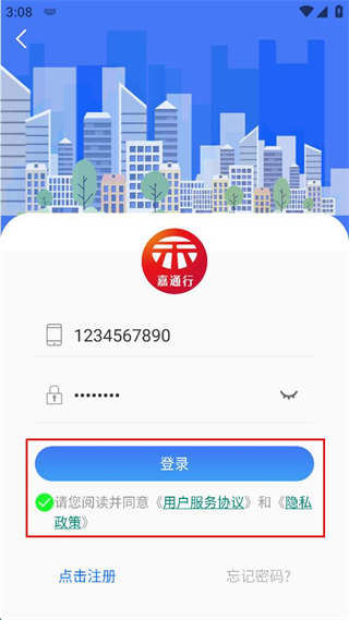 4、填写账号与密码,勾选相关协议后点击登录按钮,完成该应用的登录流程。