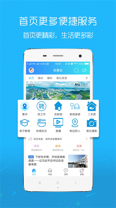 在黄石app是黄石本地生活服务网站在黄石的安卓版手机客户端,关注身边人、身边事,发现价值、分享乐趣,“在黄石”和您一起发现黄石的人和事,分享有价值的思想与行动,让黄石城市文化更加友好、蓬勃和多样。在这里,你会发现你所生活的黄石更亲切、更真实。