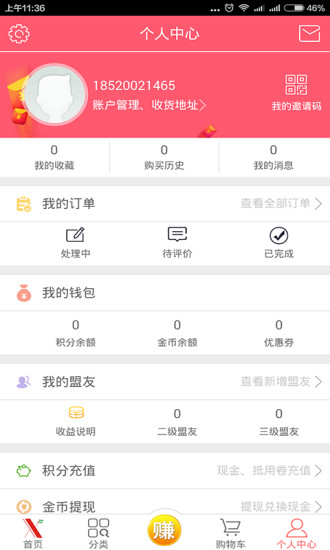 4.分享有礼:分享您的专属邀请链接,好友注册购物可获得积分回馈