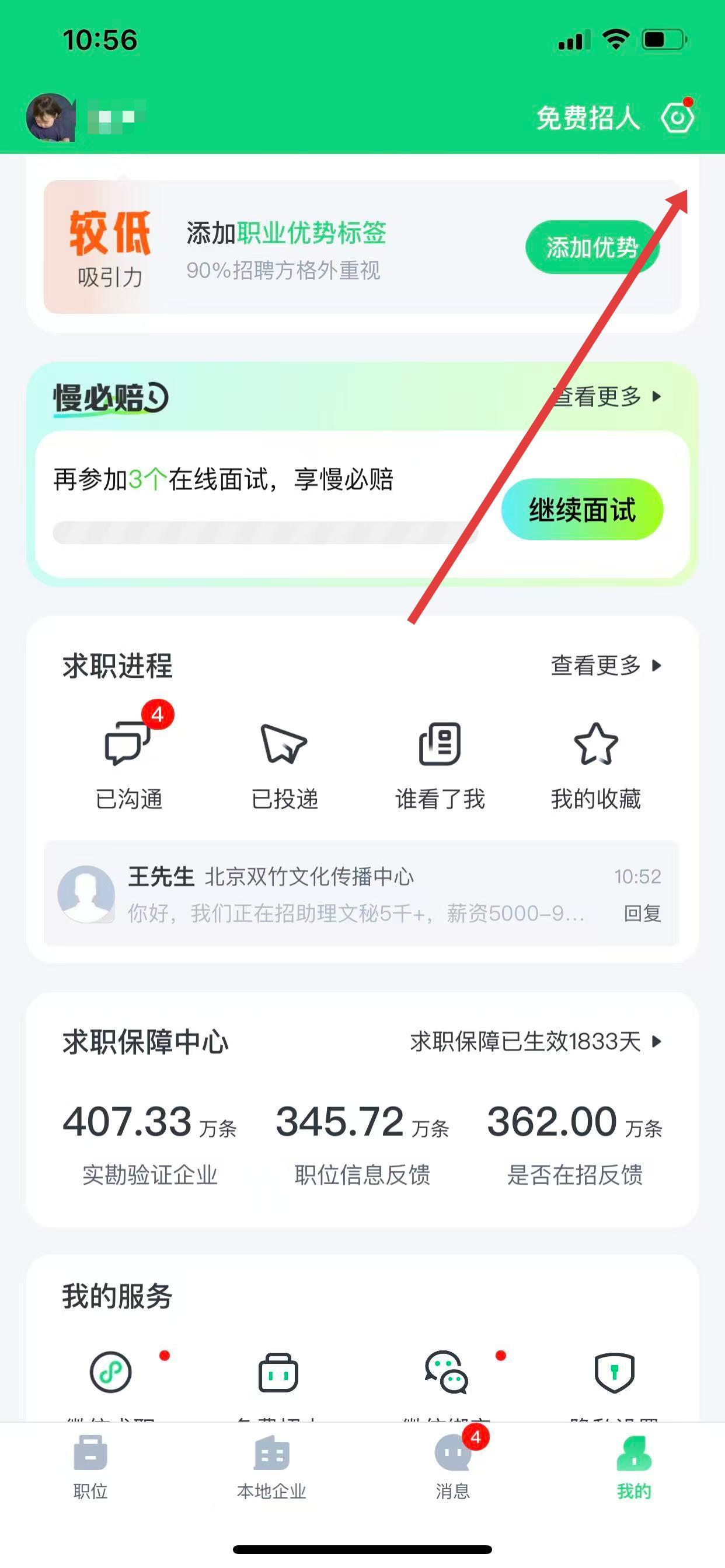 1、打开赶集招聘商家版App,进入个人页面,点击设置。