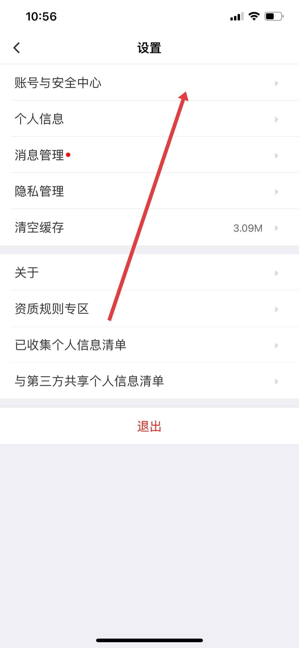 2、在设置页面中,点击账号与安全中心选项。