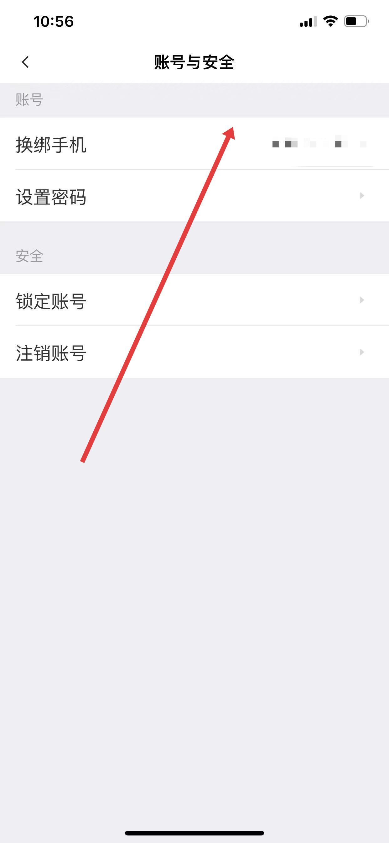 4、找到并点击换绑手机选项。