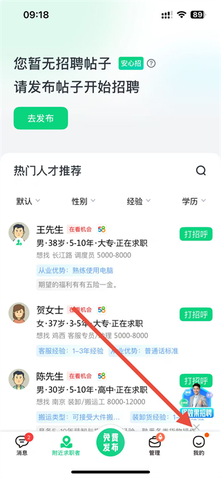 附近3公里正在找工作的人全在这儿,一键发送面试邀请,我把最适合的人送到你面前,招人更高效