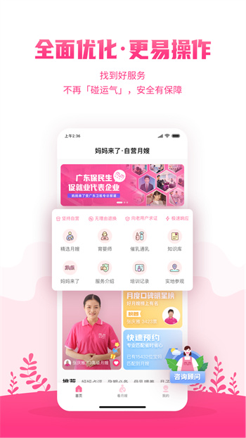 妈妈来了app是一款专门为用户设计的母婴服务应用,为广大的孕期和产后妈妈提供月嫂、催乳开奶、产后恢复等母婴服务,方便快捷,有需要者欢迎下载!