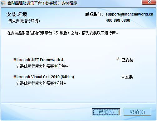 2、检测运行环境并下载相应的文件:软件运行需要.net framework4 和C++运行库,如果系统没有则会自动下载并且安装,只需点击下一步即可;
