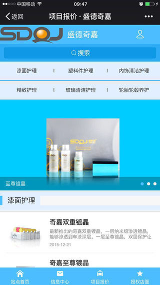 盛德奇嘉是北京盛德奇嘉汽车用品商贸有限公司旗下的汽车美容掌上服务平台,车主可以通过线上了解与选择我们提供的汽车美容服务项目,然后在所在地或者距离自己最近的奇嘉合作授权店面进行线下施工服务。