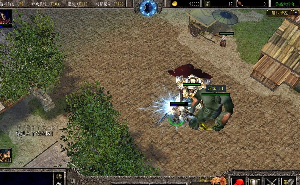 15、王者之城比奇城堡。可交易、可嗑油、可秒升武器、可秒升技能、可领超级毒药、可买超级护身符、可得武器。