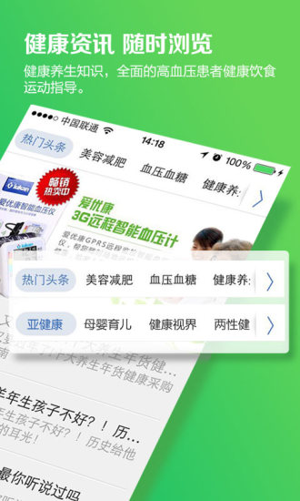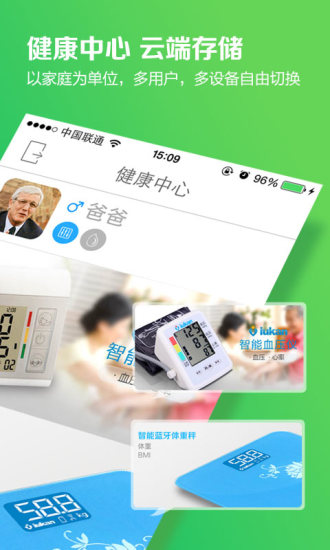 爱优康app是一款手机智能健康设备软件,让你可以轻松测量家人的健康数据,血压数据一目了然,自动分享历史数据,让你轻松掌握健康动态,喜欢就试试吧!