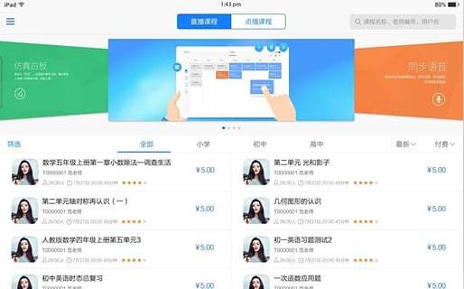 授课形式包括一对多的语音实时传输以及白板操作轨迹实时传输。