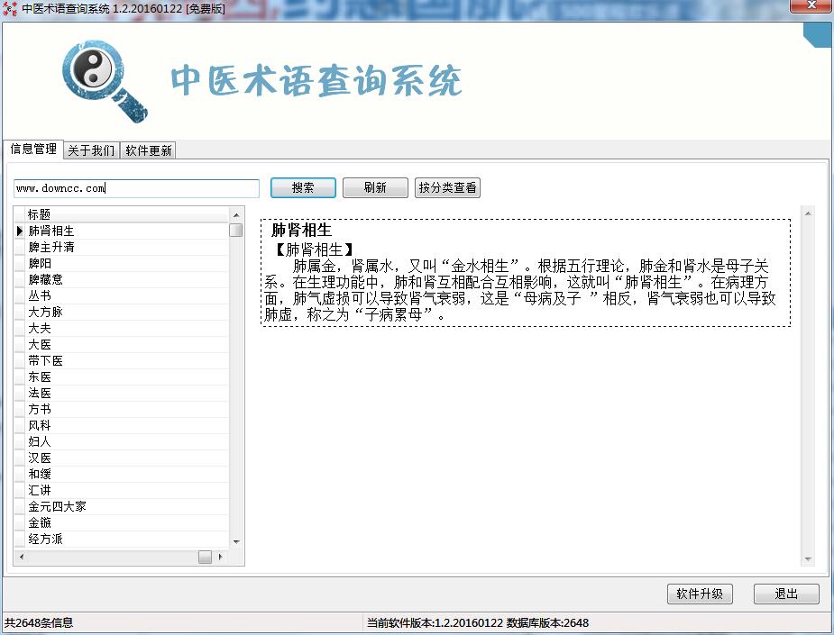 中医术语查询系统是一款专门为喜欢中医,从事中医行业的朋友打造的一款中医术语的查询软件,只需输入关键词,即可查询详细的信息,并且支持分类查看,非常的好用,欢迎需要的朋友来绿色资源网下载体验吧!