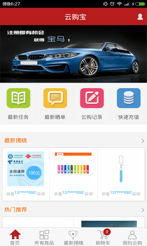 云购宝app是一款一元众筹购物类手机软件,这里含有手机数码、汽车、电脑办公、精品电器、话费充值卡等商品,用户只需要支付一元钱即有机会获得自己心仪的商品,喜爱的朋友赶快到绿色资源网下载使用吧!