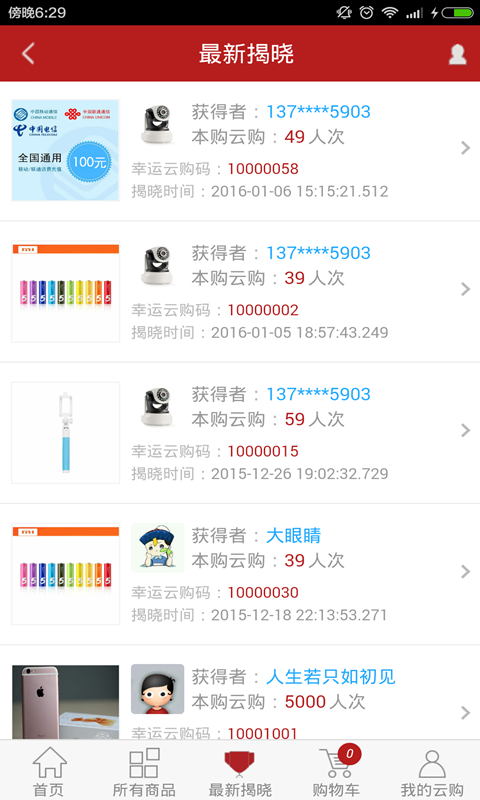 每件商品揭晓结果公布之后,登录云购宝,进入"我的云购",在"云购记录"中即可查询揭晓情况。