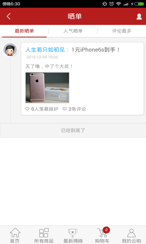 在您收到商品后,登录云购网,进入"我的云购",在“晒单分享”区发布晒单信息。在您成功晒单后,您的晒单会出现在网站“晒单分享”区,与大家分享喜悦。