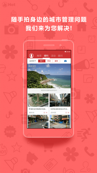 赶紧举起手机,咔嚓一个,上传到“美丽深圳”,动动手指就能解决您身边的民生问题,还你一个美丽的深圳!