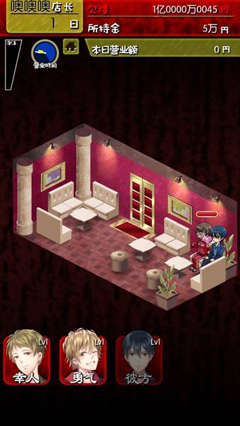 牛郎店,听起来就羞羞的呢,做牛郎店的老板更是爽翻,各色牛郎任你差遣,提供前来消费的各色女性们最贴心周到的服务。作为一家黑店,你还要引诱顾客们大笔砸钱,然后升级店铺,解锁更昂贵的酒水,招来更加帅气的牛郎,走上人生巅峰…想想还有点小激动了!但是!定期来收债的人和收到朝阳群众举报前来查店的警察都会影响你赚钱经营,所以一定要仔细慎重的经营哦。