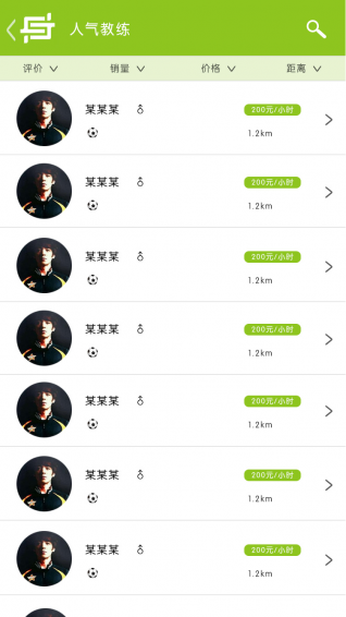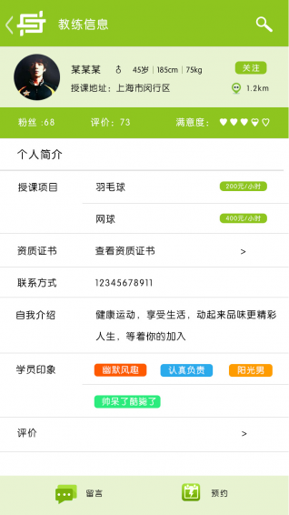 3.用户可搜索私人教练(专业私交/兼职教练),用户可与教练进行线上交流,预定运动课程及时间;
