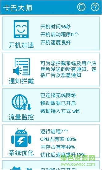 卡巴大师app是一款功能强大的手机优化软件,这款软件具有手机垃圾清理、系统优化、开机加速等等多种特色功能,绿色小巧,使用方便,需要的朋友欢迎来绿色资源网下载!